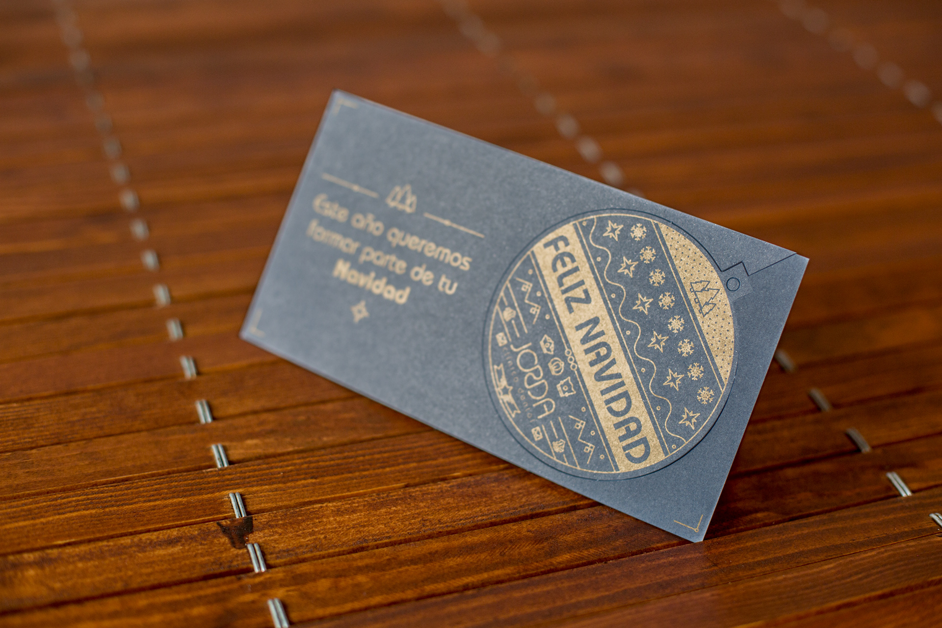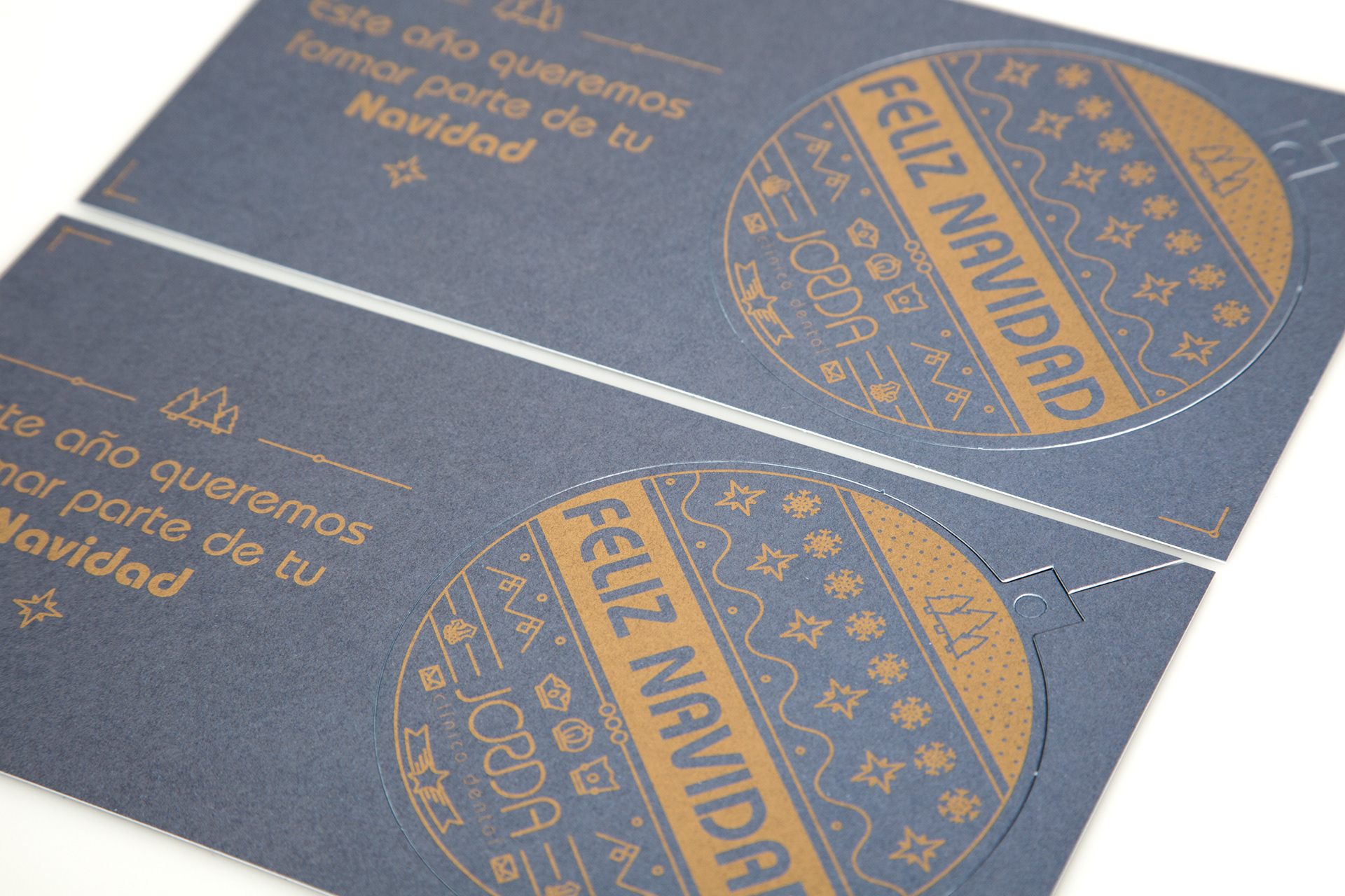 Felicitación de Navidad para la Clínica Dental Jordá. Una tarjeta que, gracias a su troquelado, permitían utilizarla para adornar el árbol navideño.